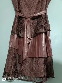 Lindo vestido tipo cocktail/fiesta en encaje y tela tipo satín. Con cierre para ajuste y cinta para la cintura (no tiene de un lado un hojal para la cinta).Talla 13/34