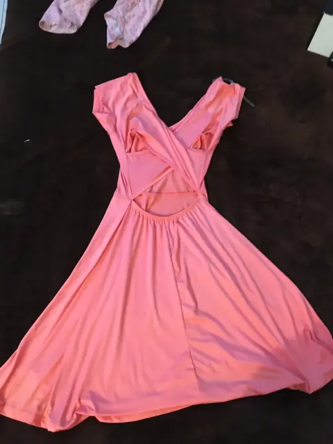 Vestido color salmón, con espalda descubierta, talla S.
