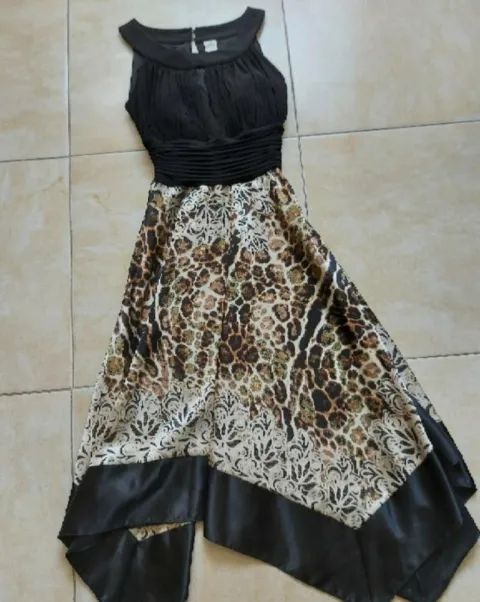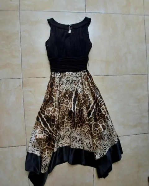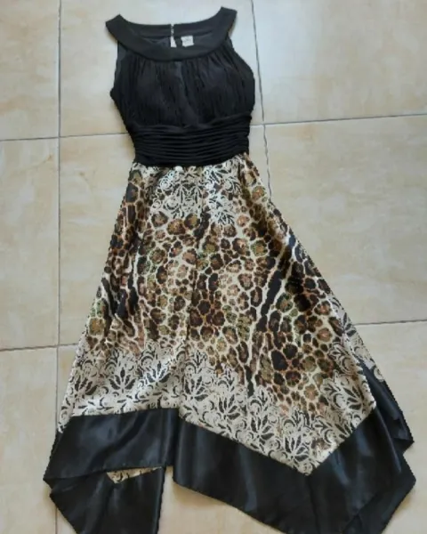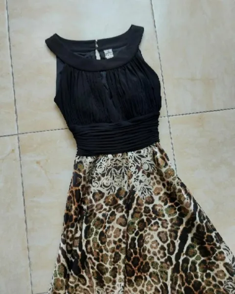 Elegante vestido talla S de axila 36 cm de largo 1.15 color negro con animal print