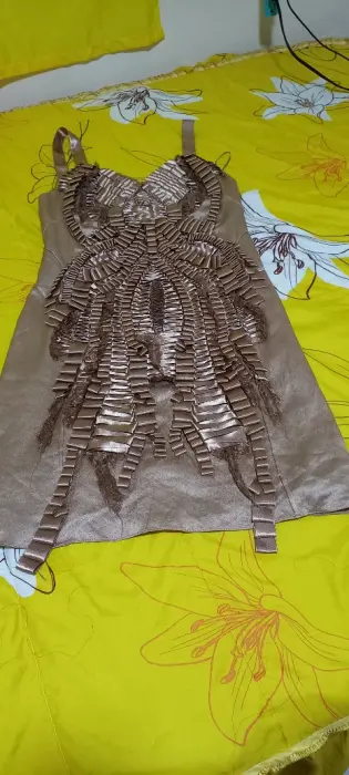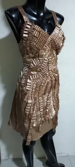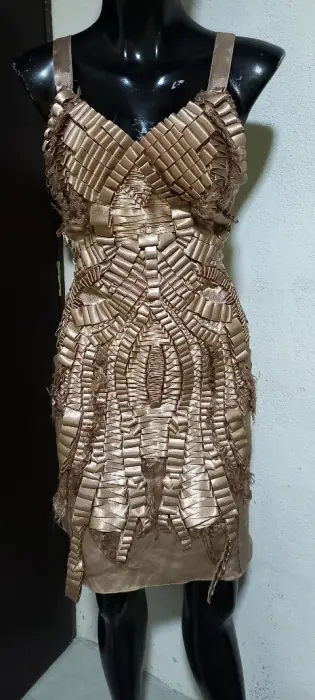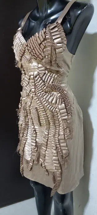 Vestido satinado nude con figura