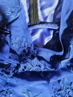 Hermoso vestido semi formal en color azul rey con aplicaciones de encaje 💙Cuenta con cierre invisible en la espalda, una abertura sutil en la parte trasera de la falda, y una ligera transparencia en la parte del pecho pero al contar con fondo no transparenta de más y le da un toque elegante y bonito (foto 3)💙