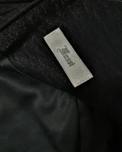 Vestido de tirante ancho, el cuello es corte alto y redondo pero el escote de la espalda es en V. En la pierna tiene abertura.