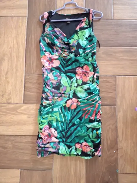 Vestido sexy. Vestido multicolor, ceñido al cuerpo con detalle en las caderas
