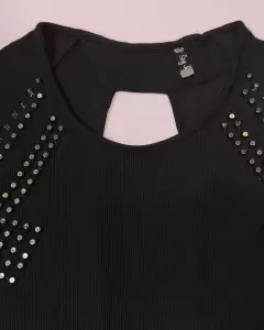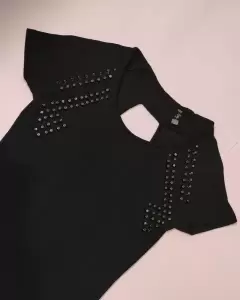 💋 Vestido SEXY JEANS negro ❣️. ❤️ Vestido negro de estoperoles en la parte superior, escote en espalda, es tela tipo lickra.Sexy y belloNOTA: Es talla mediana pero está reducido, queda mejor a talla extra chica y chica.MedidasHombro 28 cm estira a talla chicaAxila 31 cm estira a talla chicaCintura 26 cm estira a talla chicaCadera 28 cm estira q talla chicaLargo 76 cm