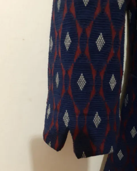 Lindo vestido corto azul marino, con begoña y blanco. Tiene un pliegue en el frente. Usado, pero en buen estado. Talla S. Medidas:hombro a hombro:36 cm, axila a axila: 41 cm y largo de 80 cm.