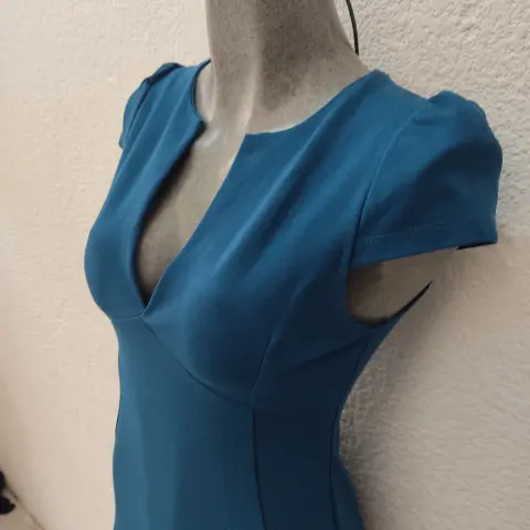 Vestido marca Shasa talla mediana, color azul, solo se uso una vez, no tiene ningún detalle. Corto arriba de la rodilla