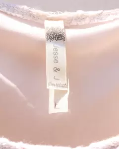 Vestido corto sin mangas, rosa palo con blanco. Perfecto para verano, talla L.