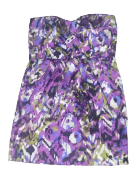 Vestido sin tirantes talla L. Vestido en seda estampado, drapeado delantero talla L