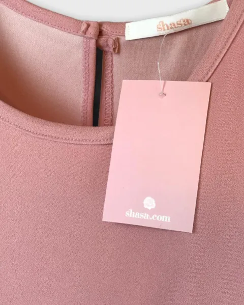 Bellísimo vestido corto, es ligero sin mangas de cuellos redondos en color rosa talla M marca Shasa