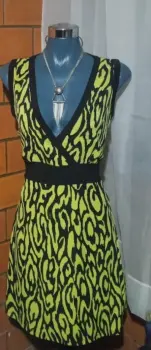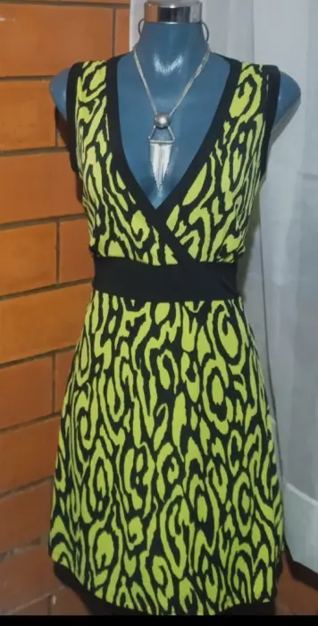 Vestido spandex talla grande, es estampado tipo animal print, color verde limón con negro, tela ligera y cómoda sin detalles está en perfecto estado 👌