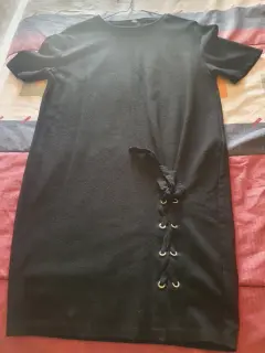 Vestido negro muy cómodo, versátil talla mediana,tela algodón. Moderno .ajustadito al cuerpo .