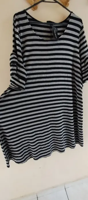 Vestido Sport, ideal con tennis. Vestido a rayas negro/gris jaspe,marca Lane Bryant, Talla 18/20, 95% rayón, 5 % spandex, cuello redondo, manga doble escarola.