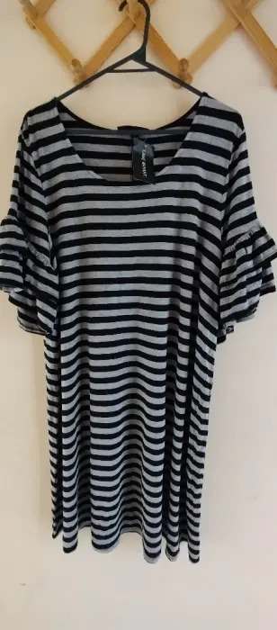 Vestido a rayas negro/gris jaspe,marca Lane Bryant, Talla 18/20, 95% rayón, 5 % spandex, cuello redondo, manga doble escarola.