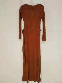 Vestido Stradivarius. Vestido Stradivarius color teja, talla G, con escote en espalda, totalmente nuevo con etiqueta. Fiel a su talla. La tela es strech y se ajusta al cuerpo.La.parte de adelante es como en la foto del gris, trae un lazo que se anuda adelante o atrás