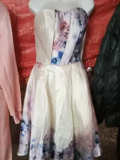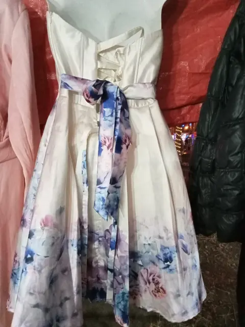 Vestido straple. Vestido estirable con listones atrás, para fiesta, talla 4, tela brilloso
