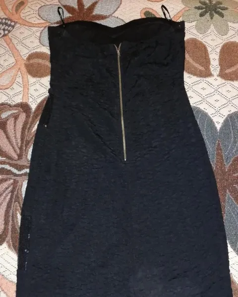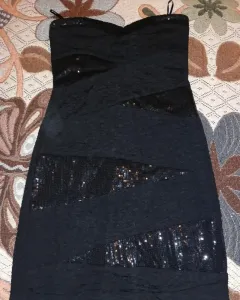 Vestido straple con brillos. Sexy vestido corto negro con lentejuelas muy cómodo por la tela suave esta en muy buen estado,dice talla M pero viene reducida.