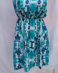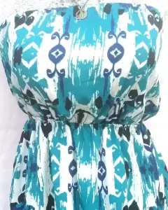 Vestido straple estampado en azul.