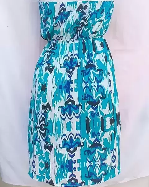 Vestido straple estampado en azul.. Vestido muy cómodo, fresco, no se baja ,estampado muy padre y combinable.