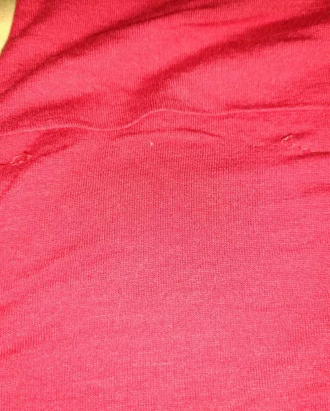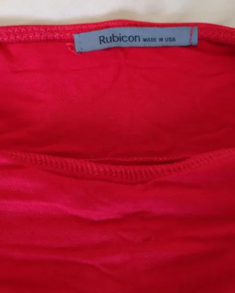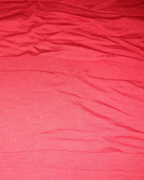 Bonito vestido rojo con pliegues en parte frontal, y liso de la parte trasera, cuenta con copas.Tiene un detalle con la costura en un pliegue que anexo en las fotos, prácticamente no se ve.