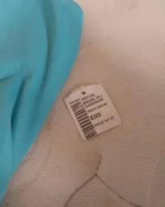 Color azul cielo, strapless, tela suave talla puede ir tanto a una talla M como L, detallados color negro en la parte inferior