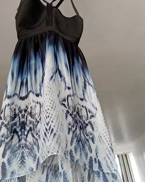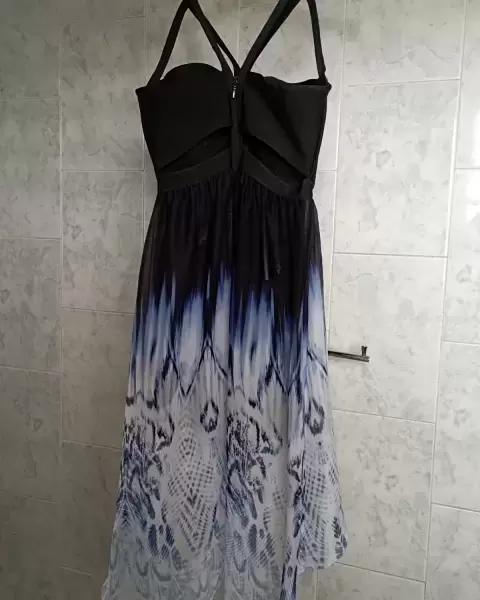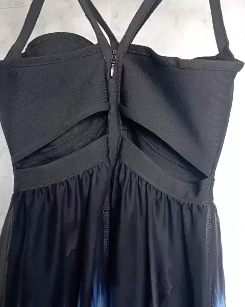 Vestido casual strapell con abertura en la espalda y resorte negro en el torso