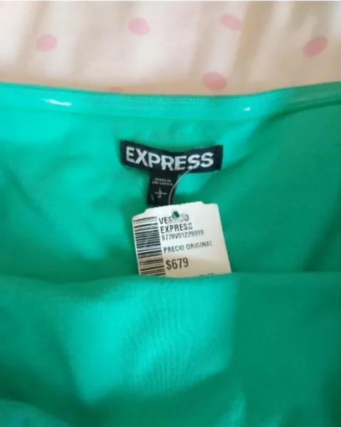 Vestido strapless color menta, nuevo con etiqueta, con tirantes incluidos, material algodón, talla L