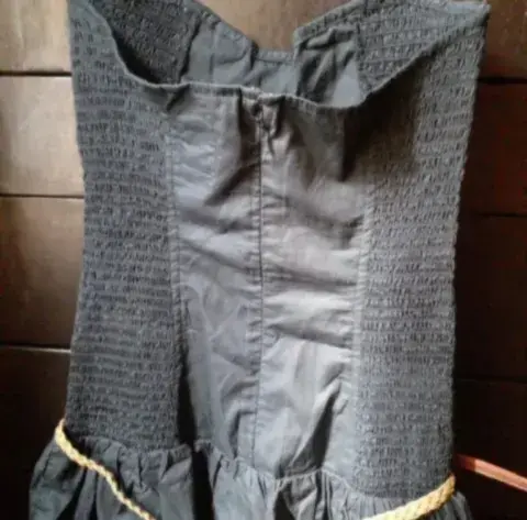 Vestido strapless. Vestido strapless corto negro con olanes con cremallera en la espalda y plisado que ajusta , contiene cinturon y este puede quitarse