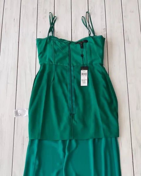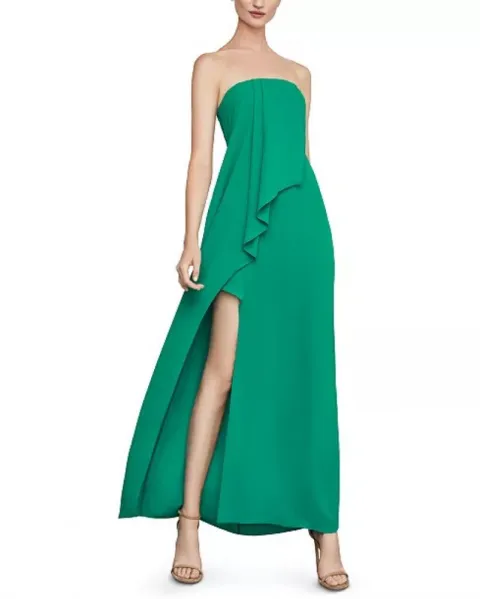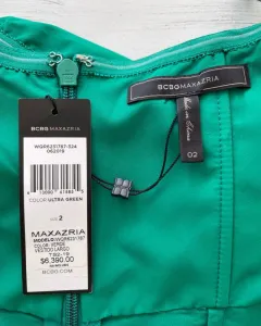 Vestido strapless BCBG. Talla: 2, ultra green (verde esmeralda) , strapless, corsé integrado, forro hasta arriba de la rodilla, tiene un olán al frente, abertura de la pierna. Se envía con el cubre de la marca. Medidas: 37.5 cm de axila, 33 cm abajo del corsé, 47 cm de cadera y 1.29 mt de largo.