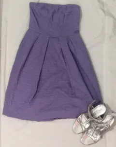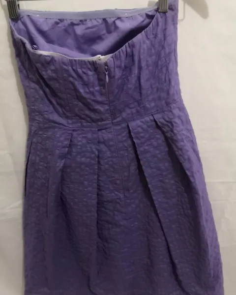 Vestido strapless morado. Vestido strapless morado marca J.Crew con cierre trasero y pegamento en el pecho para ajuste perfecto, bolsillos laterales Y varillas en el pecho amolde perfecto.