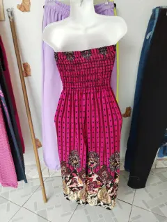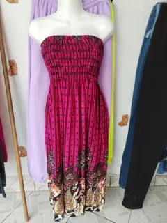 💞Hermoso vestido Strapless, unitalla, semi largo, llega a la rodilla aprox. Tela delgada y fresca