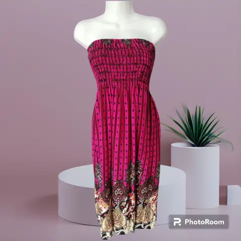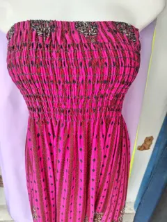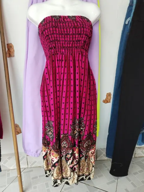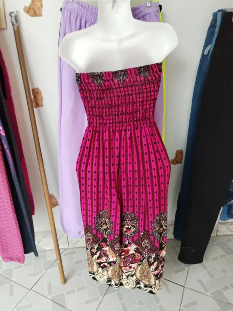 💓💗Vestido Strapless rosa 💗💗. 💞Hermoso vestido Strapless, unitalla, semi largo, llega a la rodilla aprox. Tela delgada y fresca