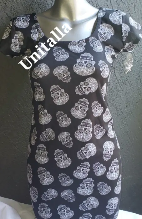 Vestido strech. Vestido strech con estampado de calavera de azúcar, unitalla, juvenil, ideal para la oficina o evento de dia