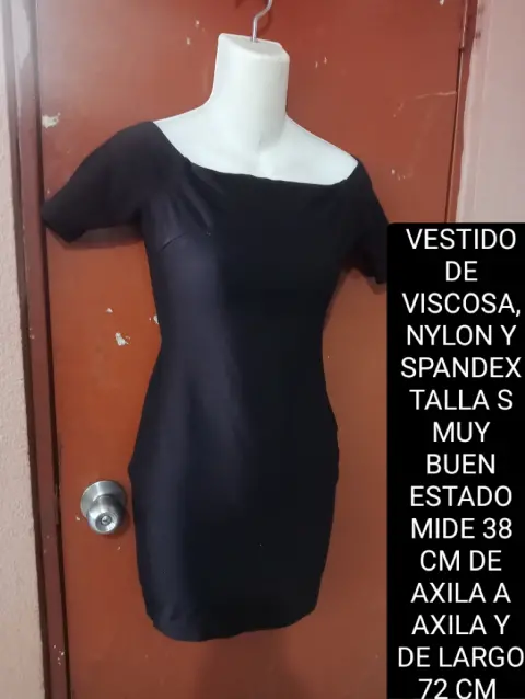 VESTIDO STRECH TALLA S. VESTIDO STRECH TALLA S DE VISCOSA NYLON Y SPANDEX MUY BUEN ESTADO MIDE 38 CM DE AXILA A AXILA Y 72 CM DE LARGO