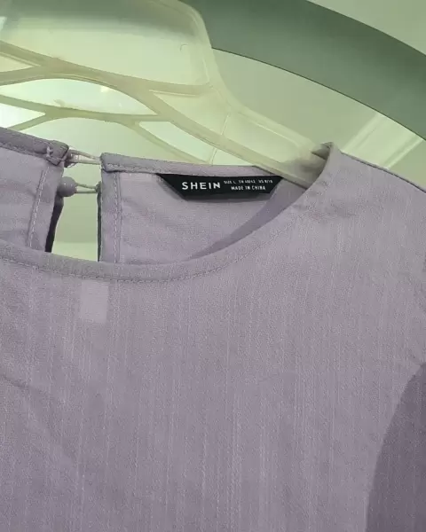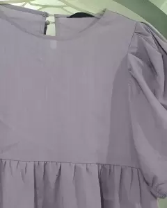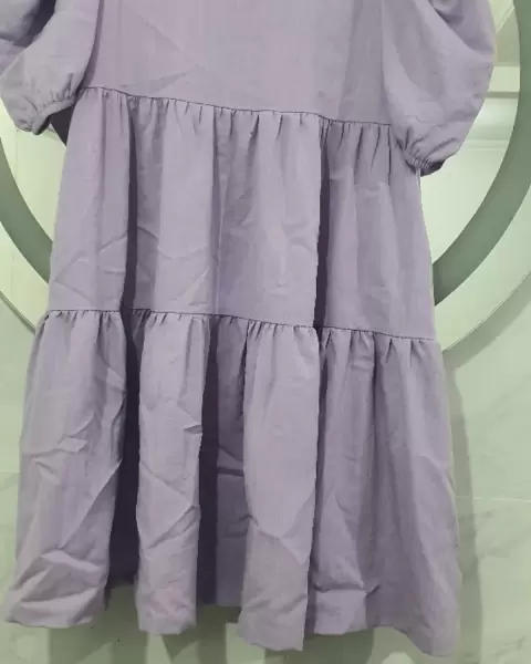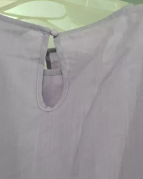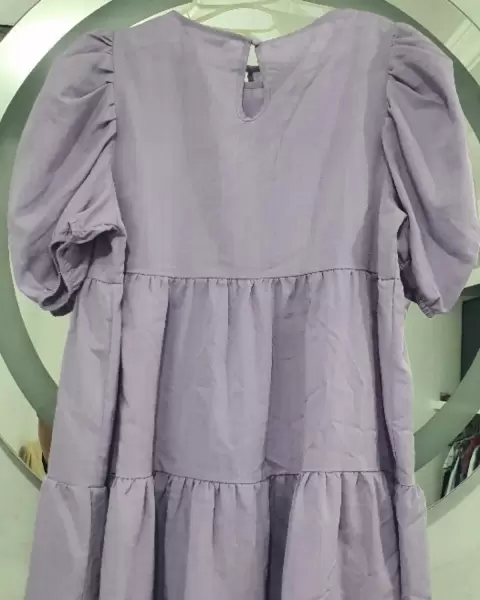 Vestido cuello redondo con botón en la parte trasera,con manga tipo farol queda suelto,largo arriba de la rodilla. Es nuevo