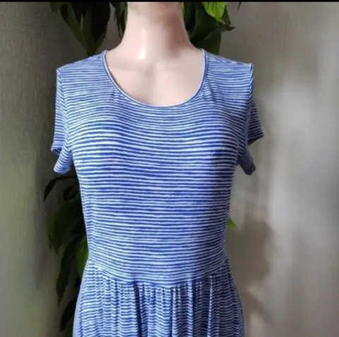 Vestido 👗 súper comodo. Vestido holgado de rayas color azul con blanco. Escote redondo, manga corta.Súper fresco.Talla S (queda a M también)