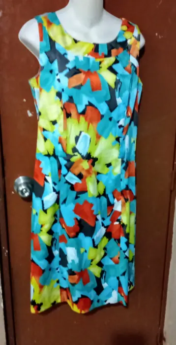 VESTIDO DE POLIÉSTER Y SPANDEX TALLA L/12 PRÁCTICAMENTE NUEVO MIDE 50 CM DE AXILA A AXILA Y 97 CM DE LARGO