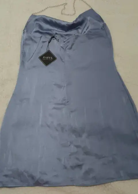 vestido satén talla M, marca zaful, nuevo con etiqueta, tirante tira de perlas, bonito y tierno diseño