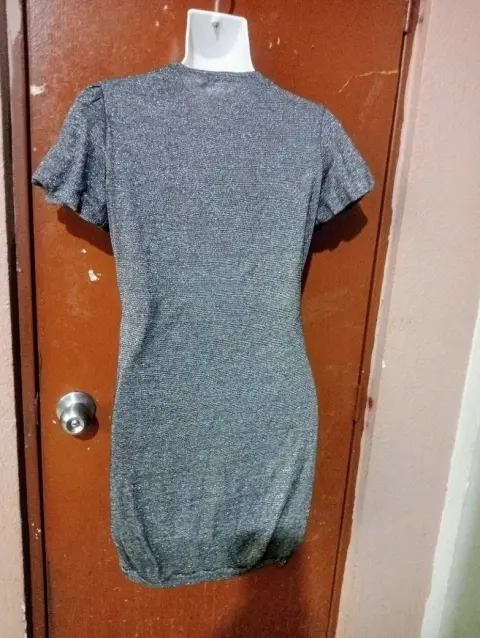 VESTIDO DE POLIÉSTER, SPANDEX Y METALICO TALLA M PRÁCTICAMENTE NUEVO SIN ETIQUETA MIDE 34 CM DE HOMBRO A HOMBRO Y DE AXILA A AXILA 44 SIN ESTIRAR Y. DE LARGO 80 CM