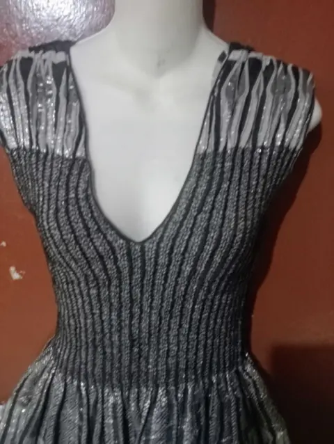 VESTIDO TALLA M EN PERFECTO ESTADO DE POLIÉSTER,RAYÓN,NYLON, METÁLICO Y SPANDEX MIDE 34 CM DE AXILA A AXILA Y 95 DE LARGO
