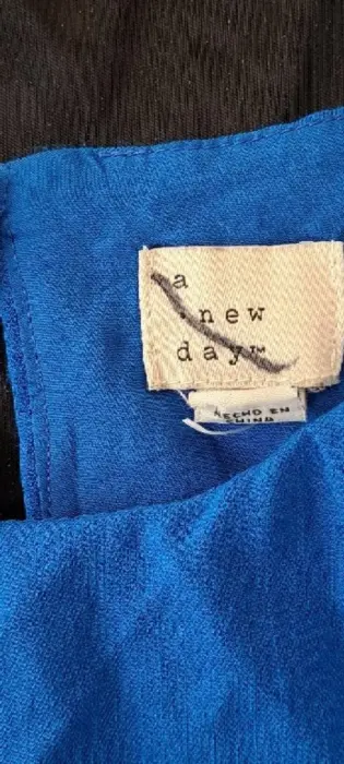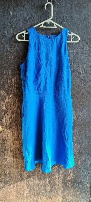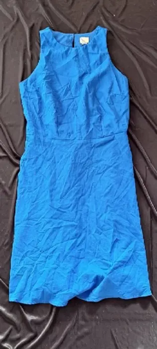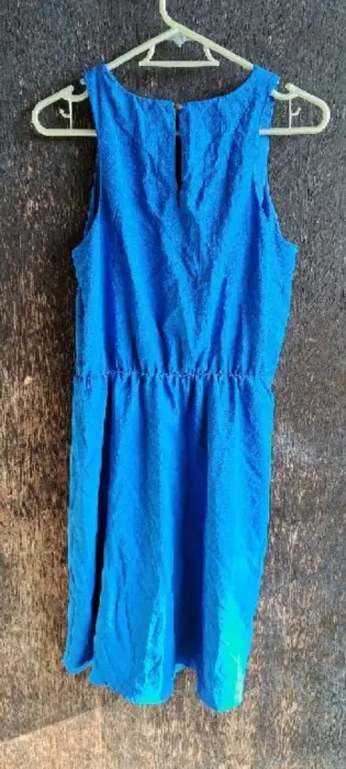 VESTIDO CASUAL , TALLA S , COLOR AZUL , HOMBRO A HOMBRO 25 CM Y LARGO 97CM , HECHO DE NAYLON , SAPNDEX Y RAYON