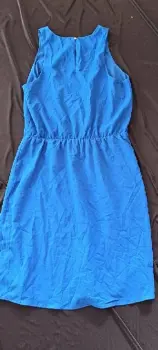 VESTIDO TALLA S. VESTIDO CASUAL , TALLA S , COLOR AZUL , HOMBRO A HOMBRO 25 CM Y LARGO 97CM , HECHO DE NAYLON , SAPNDEX Y RAYON