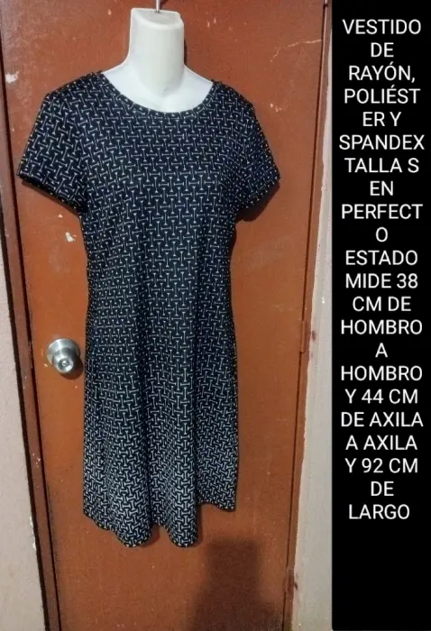 VESTIDO DE RAYÓN, POLIÉSTER Y SPANDEX TALLA S MUY BUEN ESTADO MIDE 38 CM DE HOMBRO A HOMBRO Y 44 CM DE AXILA A AXILA Y 92 CM DE LARGO
