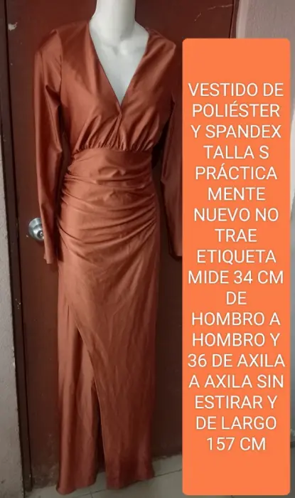 VESTIDO TALLA S. VESTIDO DE POLIÉSTER Y SPANDEX TALLA S EN MUY BUEN ESTADO LA ETIQUETA SE CAYO MIDE 155 DE LARGO
