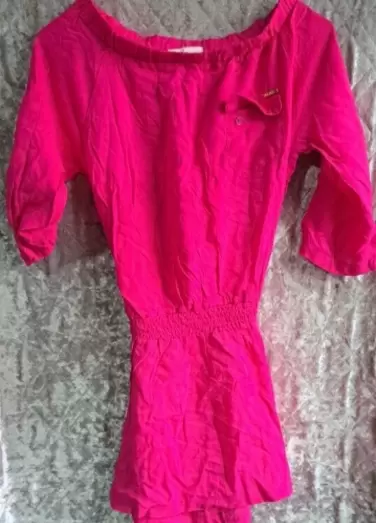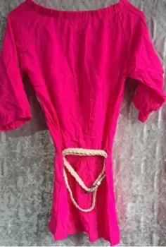 VESTIDO CASUAL ,TALLA S ,COLOR ROSA ,CON MANGAS 3/4 DE MEDIDA 37 CM , DE HOMBRO A HOMBRO TIENE RESORTE Y MIDE 32 CM , DE AXILA A AXILA 44CM , CINTURA MIDE 20 CM, INCLUYE RESORTE , DE LARGO 70 CM , INCLUYE UN CINTURON DE COLOR BEIGE , HECHO 100% RAYON,MARCA ULA,