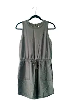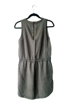 Vestido corto sin mangas, con bosillos al frente, cintura ajustable, cierre expuesto en la parte posterior de la marca Lou & Grey talla XS. El producto es usado en excelentes condiciones sin detalles. Proviene de un hogar libre de humo de tabaco y mascotas.Medidassisa: 44 cmscintura: 39 cmscadera: 50 cmslargo: 86 cms100% lyocell