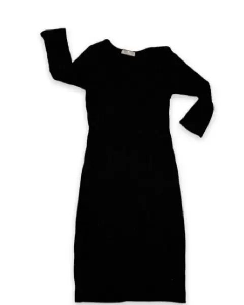 Vestido tejido negro. Cómodo vestido de tela estilo suéter (estira) de una sola pieza en color negro. Manga tres cuartos. Medidas en las imágenes .