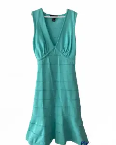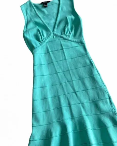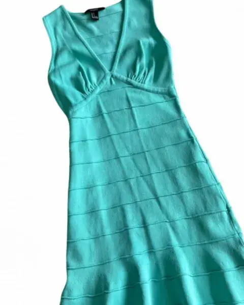 Vestido 👗 tela bandage. Casual vestido 👗 color Aqua , escote V , ajuste cintura , falda A con pliegues ✨