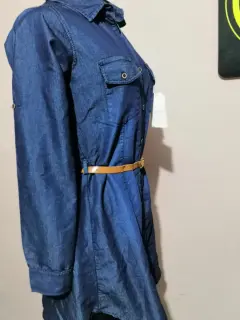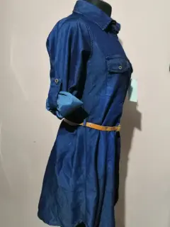 Vestido tela mezclilla ligera. Vestido manga larga retraible, incluye el cinto de la imagen, nuevo sin detalles, da entre talla 28-30 MX, largo 88cm