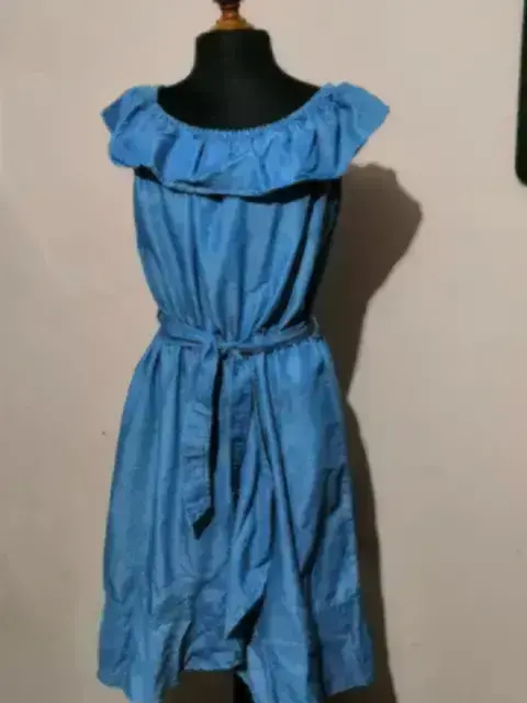 Vestido tipo campesino. La tela es ligera y simula estar drapeado pero como se muestra en una imagen no se abre ni al caminar ni al sentsrse, da entre talla 34-47 de largo mide 97 CM, y la cintura trae elástico se ajusta a la cintura
