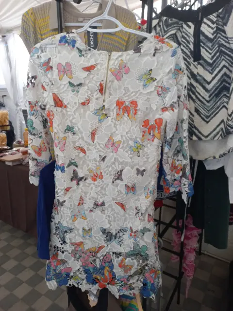 Vestido tipo encaje de mariposas. El vestido dice M pero viene super reducido, seria XS, es nuevo con etiqueta pero al ser blanco se ha manchado un poco por el mamejo